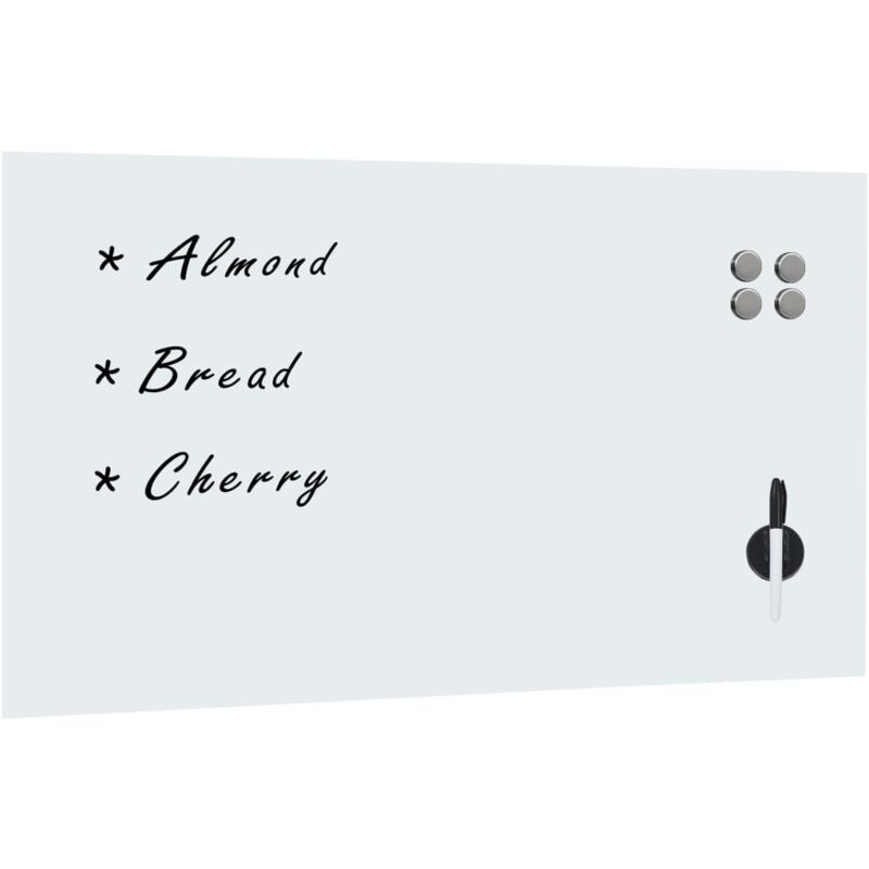 Le lavagne in vetro magnetiche cancellabili a secco offrono tutti i vantaggi di una lavagna tradizionale in un prodotto più moderno ed ecologico. La lavagna di vetro è dotata di vetro temperato di sicurezza, che non si macchia, graffia o ammacca facilmente. È possibile proteggere carte o note sulla lavagna con il magnete incluso. Inoltre, è possibile scrivere sulla lavagna magnetica con una penna bianca cancellabile a secco ed è facile da pulire con il cancellino incluso. Sono inclusi i materiali necessari per il montaggio a parete, il che semplifica il collegamento della scheda a qualsiasi parete di casa, ufficio o scuola. Il pannello è anche facile da montare. Specificazioni: Colore: Bianco Materiale: Vetro temperato Dimensioni: 120 x 60 cm (L x A) Spessore della lavagna: 4 mm Facile da fissare a parete Materiali di montaggio inclusi Assemblaggio richiesto: Sì La consegna include: 1 Lavagna cancellabile a secco 1 Cancellino 1 Penna bianca 4 Magneti SKU: 285376