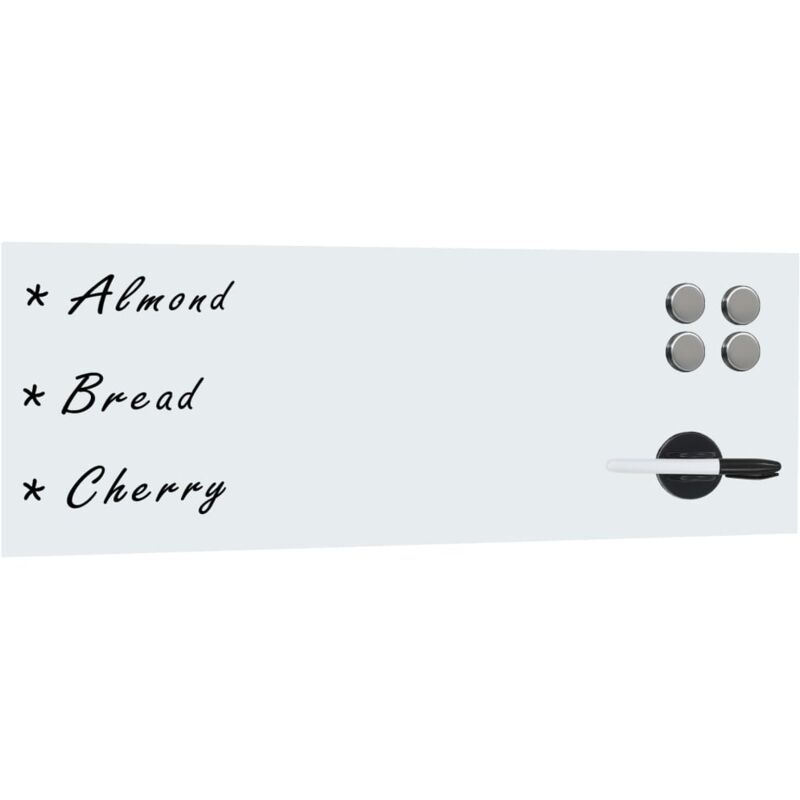 La nostra lavagna magnetica bianca in vetro, cancellabile a secco, è la soluzione ideale se state cercando di creare una zona di riferimento all'interno della vostra casa in cui sarà possibile scrivere annotazioni, disegnare ghirigori o esporre le vostre foto. La lavagna cancellabile a secco ha una superficie magnetica in vetro temperato facile da pulire grazie al cancellino in dotazione. I materiali necessari per il montaggio a parete sono inclusi e permetteranno di fissare facilmente la lavagna bianca a qualsiasi parete della casa, dell'ufficio o della scuola. Specificazioni: Colore: Bianco Materiale: Vetro temperato + acciaio zincato Dimensioni: 60 x 20 cm (L x A) Spessore della lavagna: 4 mm Facile da fissare a parete Materiali di montaggio inclusi La consegna include: 1 Lavagna cancellabile a secco 1 x Cancellino 1 Pennarello nero 4 Magneti SKU: 30110