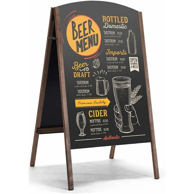 Attributi: Materiali di alta qualità: il telaio del cavalletto è realizzato in legno di pino di alta qualità e collegato da cerniere in metallo. Il design triangolare fornisce una struttura stabile. A causa del materiale in legno, spostalo all'interno quando piove. Area di scrittura sufficiente: la dimensione dell'intera lavagna è di circa 45 x 80 cm / 101 x 60 cm e l'area di scrittura è di circa 37 x 60 cm / 59 x 80 cm, il che fornisce spazio sufficiente per le informazioni. La lavagna cavalletto ha doppio volto per scrivere o disegnare. Si usa il pennarello in gesso liquido, puoi acquistare tutti colori in cartoleria o al supermercato. Piedini di gomma: Il fondo dei piedini del cavalletto ha speciali cuscinetti in gomma, che non graffierà il pavimento se usato all'interno. Se utilizzato all'aperto, l'altezza può essere aumentata per evitare che il legno venga impregnato dalla pioggia. Multifunzionale e pratico:è una lavagna da pavimento molto pratico, che può visualizzare il menu