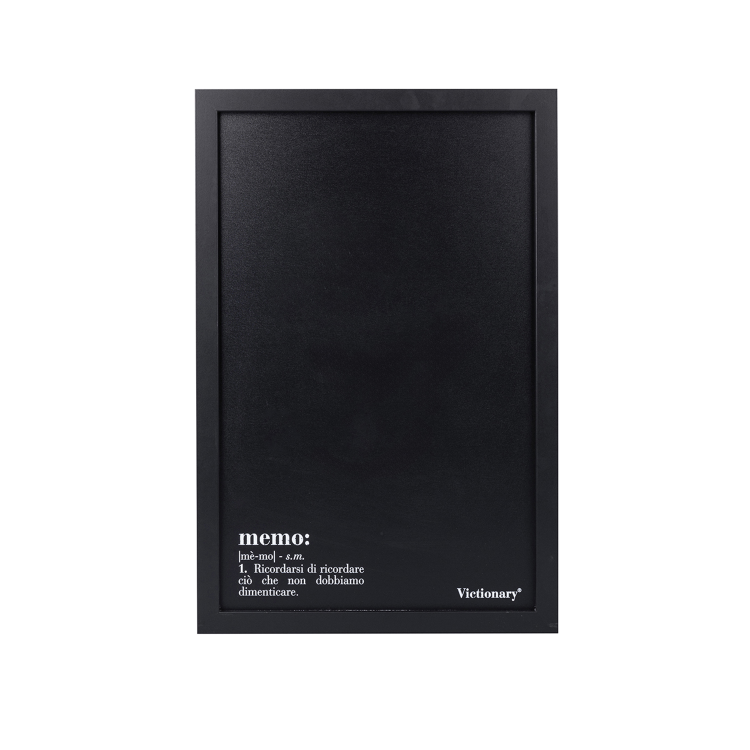 La linea Victionary, con il suo personale vocabolario, attribuisce ad accessori di uso comune un significato speciale che coniuga elementi di creatività e vita quotidiana. La definizione di memo stampata sul lato frontale della lavagna da parete ti strapperà un sorriso ogni volta che la vedi appesa in cucina o quando scrivi gli impegni da tenere a mente. Nella confezione trovi anche i gessetti da usare sulla lavagna, da rimuovere poi con un panno umido senza usare detergenti. Misure: 40x60x1,8 cm.