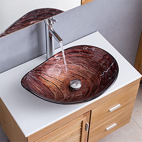 Lavandino Da Bagno Lavabo Da Appoggio In Vetro Temperato A Forma Di Goccia, Lavabo Da Appoggio Lavabo Da Appoggio Lavabo Da Bagno Dell'hotel 550 X 380 X 170 Mm (Rosso,Package 1)