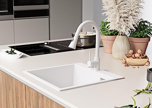 Lavandino Cucina 49 x 50 cm, Lavello Composito 1 vasca + Sifone Automatico, Lavabo Cucina Incasso Oslo 50 XXL di Primagran, Bianca