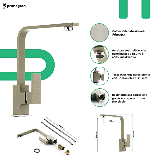 Lavandino Cucina 78 x 50 cm, Lavello in Granito 2 vasche + Miscelatore Cucina + Sifone Classico, Lavabo Cucina Incasso Oslo 80 Twin di Primagran, Beige