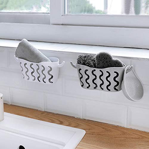 Lavandino sapone spugna Drain rack organiser da cucina con ventosa per doccia senza trapano, in plastica con ventose resistenti senza trapano White