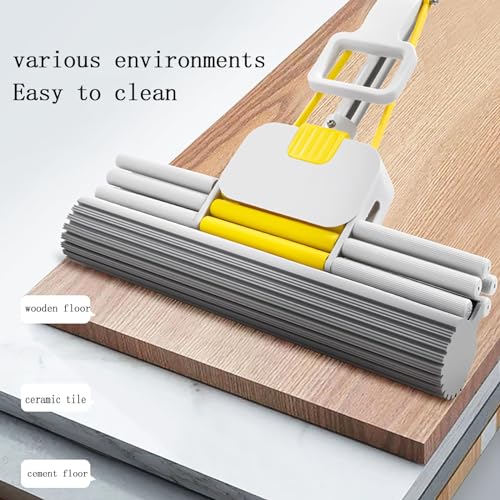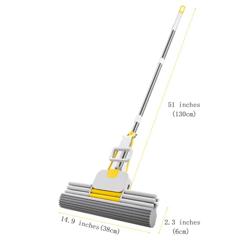 Lavapavimenti, Mocio In Spugna, Mocio Autostrizzante Scopa Lavapavimenti, Scopa In Spugna Grande Con Rullo A Tre File Da 38cm, Palo In Acciaio Inox Lungo 130cm,Pulizia Pavimenti(1 head)
