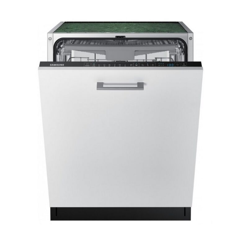 Samsung Lavastoviglie DW60R7050BB. Posizionamento dell'apparecchio: A scomparsa totale, Dimensione: Dimensione massima (60 cm), Colore pannello di controllo: Nero. Numero di coperti: 14 coperti, Classe emissione rumore: B, Emissione acustica: 44 dB. Classe efficienza energetica: D, Consumo di acqua per ciclo: 9,9 L, Consumo energetico per 100 cicli: 85 kWh. Larghezza: 598 mm, Profondità: 550 mm, Altezza: 815 mm. Consumo d'acqua totale annuo: 2772 L Design Posizionamento dell'apparecchio: A scomparsa totale Dimensione: Dimensione massima (60 cm) Colore della porta: Non applicabile Display incorporato: Sì Colore pannello di controllo: Nero Tipo di controllo: Touch Tipo di display: LED Regolazione cestello superiore: Sì Tipologia compartimento posate: Cassetto Materiale vasca: Acciaio inossidabile Pannello porta incluso: No Prestazione Numero di coperti: 14 coperti Quantità programmi di lavaggio: 8 Classe emissione rumore: B Emissione acustica: 44 dB Programmi speciali: Auto