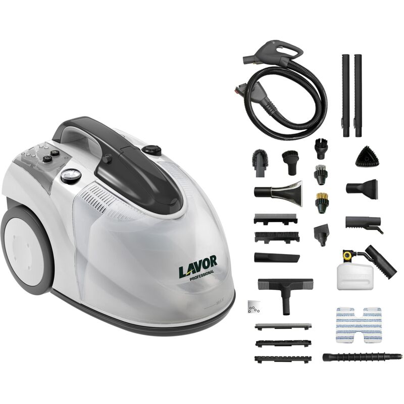 La lavasuperfici a vapore Lavor GV Egon Vac 4.1 Plus è un elettrodomestico molto efficace per la pulizia di pavimenti sia in ambito domestico che professionale, con risultati di igiene eccellenti . Grazie al vapore che raggiunge la temperatura max di 152° e ai numerosi accessori in dotazione riesce a pulire e disinfettare al 100% ogni ambiente e superficie ( pavimenti, rivestimenti, tappeti, tende, vetri, fornelli, sanitari ecc.). Vediamo le caratteristiche principali della GV Egon Vac: Motore da 1400 W potente e robusto Caldaia inox AISI 304 1900 W Pressione di esercizio max 5 bar Regolazione del getto del vapore Serbatoio acqua/detergente 8 lt Capacità serbatoio recupero 8 l Caldaia riempibile in continuo Manometro Filtro lavabile e sistema filtraggio HEPA H14 Ruote posteriori di grandi dimensioni e una anteriore pivottante che facilitano lo spostamento su qualunque superficie Termostato per verificare la temperatura del vapore interno Interruttore “ON/OFF” e spie luminose di