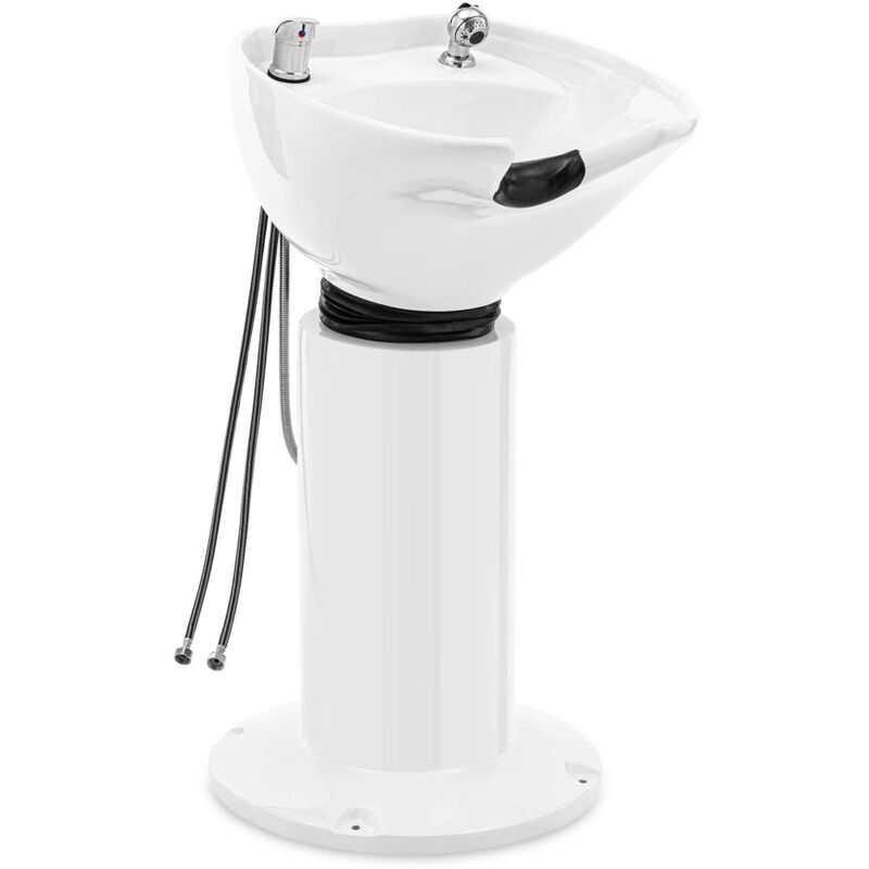 Il lavandino di parrucchiere indipendente in elegante combinazione in bianco e nero Il lavandino di parrucchiere indipendente dal requisito di parrucchiere fisico è la soluzione ideale per il tuo salone di parrucchiere! Qui, i clienti si appoggiano comodamente per lavarsi i capelli. Il robusto lavandino in ceramica con incasso silicone per l'area del collo rende questo modello un'attrezzatura affidabile e attraente per il salone. Flexible - Lavana in ceramica di 35 - 40 °. BR> Solido - base in acciaio inossidabile inossidabile e robusto lavabo di lavaggio in ceramica SOLO - SCORRE CON SIVEGGIO RIMOVIBILE E SEAL in gomma comodo - imbottitura al silicone nella zona del collo