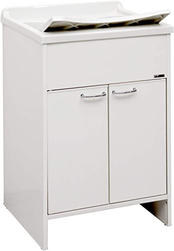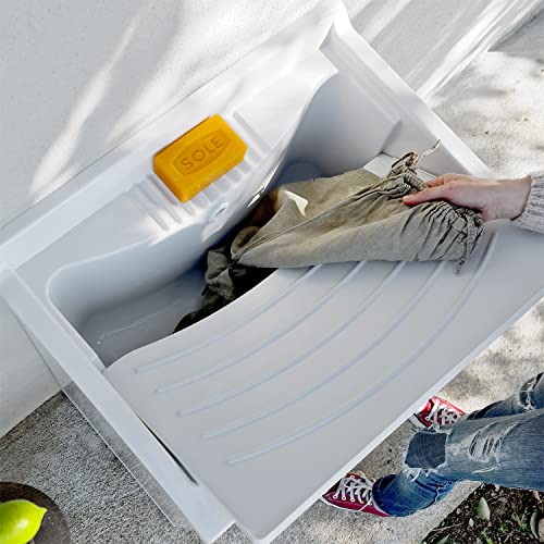 Lavatoio Lavanderia da esterno giardino e terrazzo salvaspazio in Resina e PVC Bianco, Vasca e Tavola in Plastica 60 x 60 x 85 cm