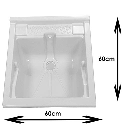 Lavatoio - Pilozzo BIANCO, ALTA RESISTENZA per esterni, materiale di prima scelta e stampo uniforme senza punti deboli, sifone IN REGALO, lavabo per lavanderia. Escelsior(L58,5 x P58,5 x H33)
