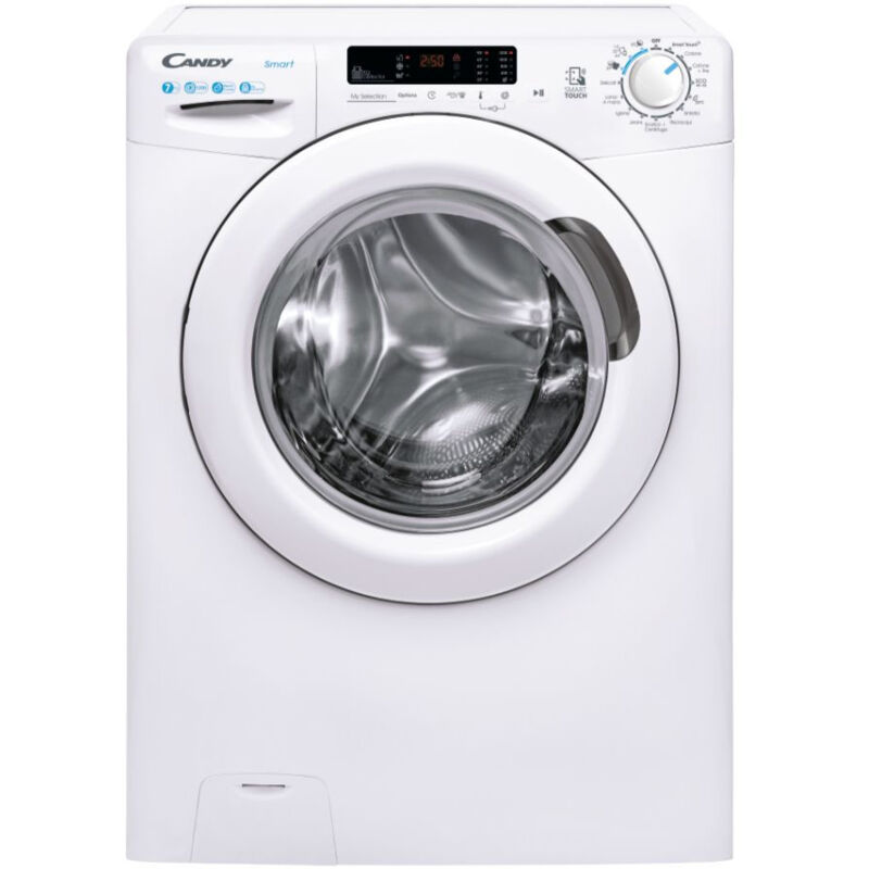 Candy Smart CS 1272DE/1-11. Tipo di carica: Caricamento frontale. Capacità cestello: 7 kg Classe di efficienza della centrifuga: B Silenziosità (centrifuga): 79 dB Velocità di centrifuga massima: 1200 Giri/min. Colore del prodotto: Bianco. Larghezza: 600 mm Profondità: 450 mm Altezza: 850 mm. Classe efficienza energetica: DSmart Candy crede nell'importanza del godersi la vita questo è il motivo per cui la nuova gamma di lavabiancheria è stata realizzata per lavare i tuoi indumenti facilmente e in maniera smart semplificandoti la giornata. In questo modo puoi avere più tempo per te e per ciò che ami di più. Lascia che Candy ti aiuti quotidianamente: i risultati saranno fantastici. Comfort e facilità d'uso: mai più sforzi eccessivi e perdite di tempo energia e denaro. Approfitta dei benefici forniti dall'altezza dell'oblò: non dovrai più stressare la tua schiena per caricare il bucato. Le lavabiancheria Candy Smart sono anche elettrodomestici connessi: ottieni benefici dalla