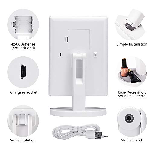 【 Rotazione libera a 180° 】: è possibile ruotare letteralmente lo specchio a LED nella posizione perfetta in direzione verticale, per darvi il perfetto angolo di visione. Il design triplo e rimovibile di questo specchio cosmetico ti permette di portarlo ovunque.