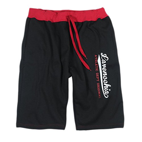 Lavecchia - Pantaloncini da jogging da uomo, taglie forti, con elastico in vita, colore: nero/rosso
