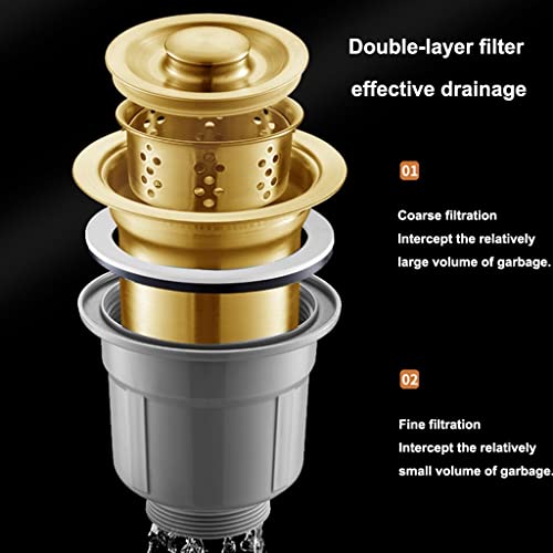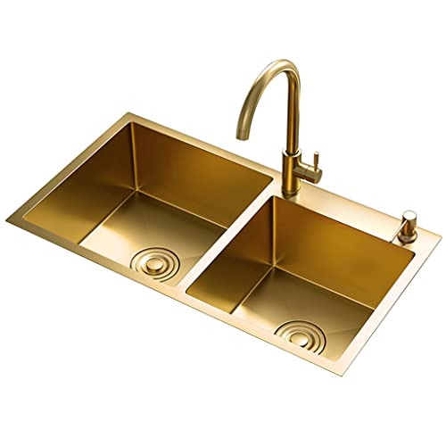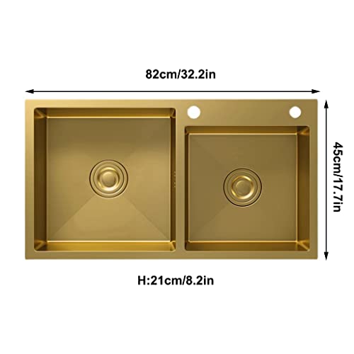 Lavelli da cucina A Doppia Vasca Acciaio Inox 304 con Rubinetto E Scarico Montaggio Superiore O Sottotop per Cucina Cortile Ufficio (Color: Gold-a, Size: 82x45x21cm)