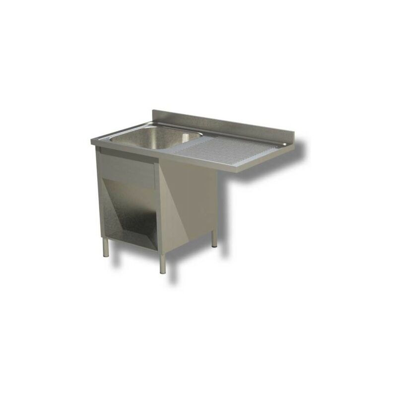 Codice RS4991 - Lavello lavatoio su fianchi e piano di fondo, modello RP-DSLFLDX126, costruito in acciaio inox 430, dimensioni cm. 120x60x85 (lxpxh), n.1 vasca dim. cm. 50x40x30 (lxpxh), sgocciolatoio DX, vano lavastoviglie. Vasca stampata spessore 1 mm, piano con spessore 40 mm, alzatina posteriore spessore 20 mm e altezza 100 mm. Gambe con profilo quadrato 40x40 mm con piedini regolabili in altezza. In dotazione: piletta di scarico d. 46 mm e tubo troppo pieno.
