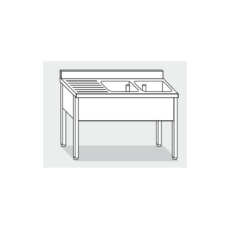 Codice RS5572 - Lavello lavatoio su gambe, modello AC-SM/LT/SR/160/2VGSX/7, costruito in acciaio inox 18/10 AISI 304 (no 430), dimensioni cm. 160x70x85 (lxpxh), n.2 vasche dim. cm. 50x50x30 (lxpxh), sgocciolatoio SX. Vasca stampata spessore 1 mm, piano con spessore 40 mm, alzatina posteriore spessore 20 mm e altezza 100 mm. Gambe con profilo quadrato 40x40 mm con piedini regolabili in altezza. Fornito in kit smontato. In dotazione: piletta di scarico d. 46 mm e tubo troppo pieno.