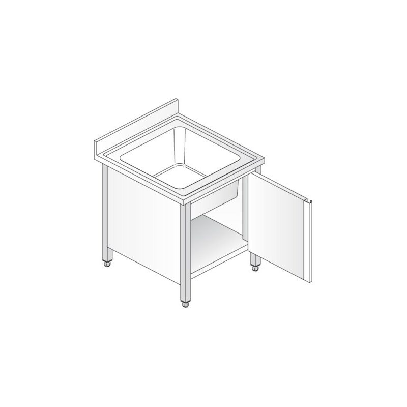 Codice RS5448 - Lavello lavatoio armadiato, modello AC-IL/LA/70/6, costruito in acciaio inox 18/10 AISI 304 (no 430), porta battente, dimensioni cm. 70x60x85 (lxpxh), n.1 vasca dim. cm. 50x40x25 (lxpxh). Vasca stampata spessore 1 mm, piano con spessore 40 mm, alzatina posteriore spessore 20 mm e altezza 100 mm. Piedini regolabili in altezza. In dotazione: piletta di scarico d. 46 mm e tubo troppo pieno.