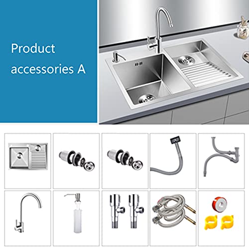 Lavello in Acciaio Inossidabile, Lavello da Balcone, Lavello da Incasso a Doppia Vasca, Lavello Manuale per Uso Domestico, con Lavabo, Gruppo di Scarico, Rubinetto (70 * 48 * 21 cm)