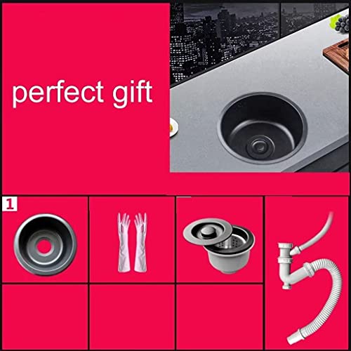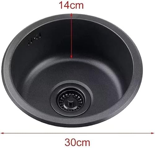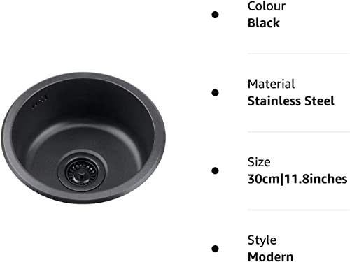 Lavello da Bagno In Acciaio Inox Lavello Rotondo Nero Cucina 304 Lavandino Rotondo Singolo Bagno Lavabo Rotondo Lavaggio Verdure E Lavastoviglie Piscina (Color: Black,Size: 35Cm|13.8Inches)