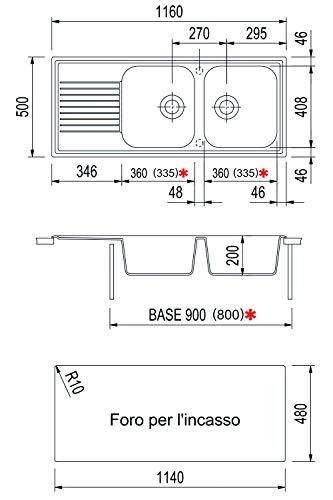 Lavello composito Plados PL1162 due vasche più gocciolatoio + tagliere legno (Bianco Polare)