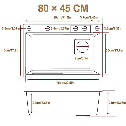 Lavello Cucina 80 × 45cm, Lavandino Cucina 1 vasca + Sifone Classico, Lavabo Cucina Incasso Lavandino Cucina Multifunzione in Acciaio Inox 304 con Gocciolatoio, Nero
