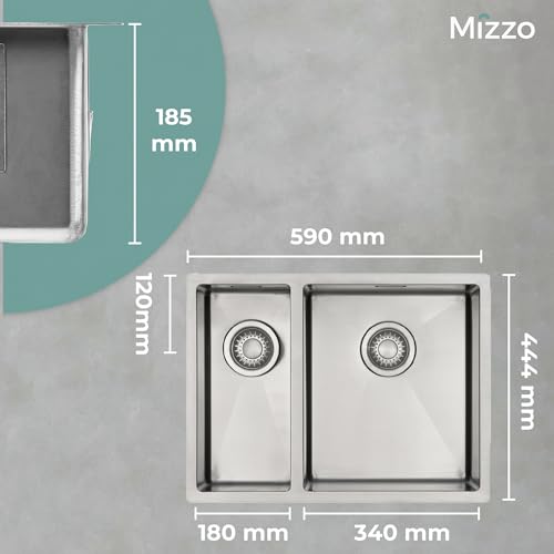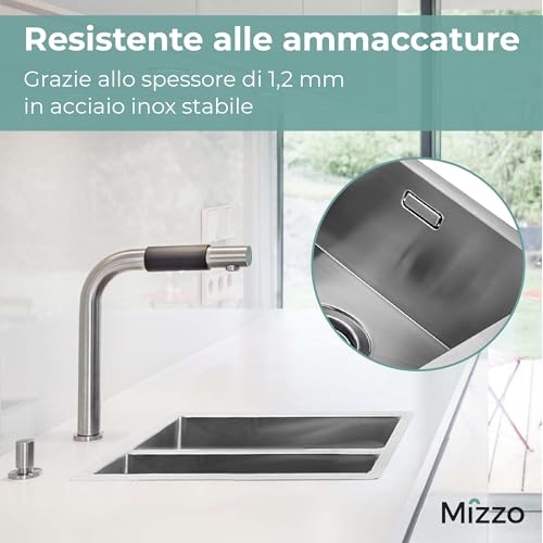 Lavello da Cucina in Acciaio Inossidabile Mizzo Linea 18-34 | Lavandino a Incasso, Filotop o Sottotop | Base 60cm | Spessore 1.2mm | 1.5 Vasca in Acciaio Inox 590x444mm | Raggio Interno da 10 mm