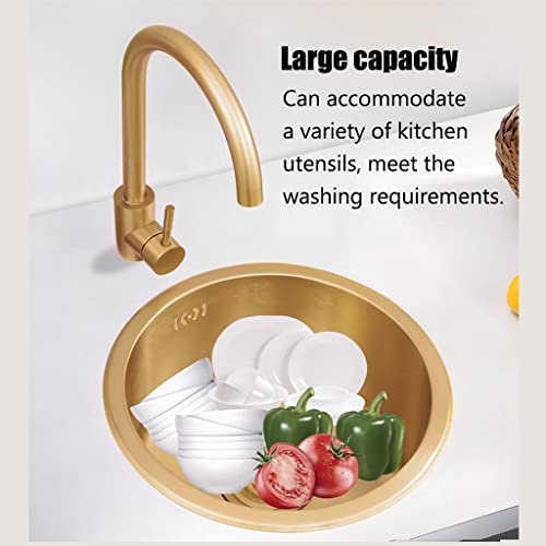 Lavello da Cucina Dorato, Lavello Rotondo in Acciaio Inossidabile con Accessori per Rubinetto E Scarico, Lavelli per Bagno E Bar, Facili da Pulire (S: 32cm-B)