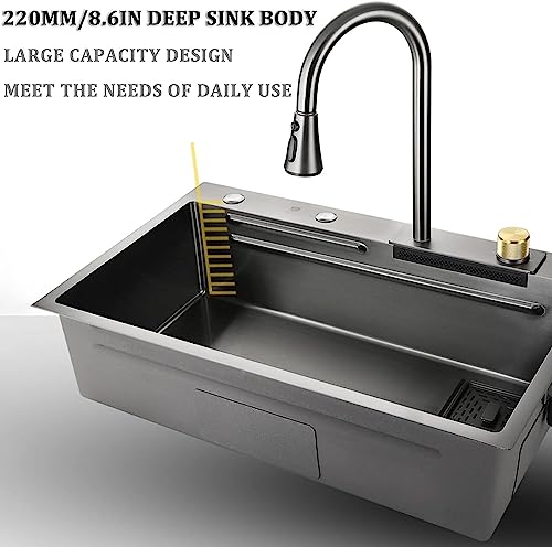 Lavello da cucina intelligente a doppio secchio Rubinetto a cascata in acciaio inossidabile con rondelle rimovibili Tagliere 2 cestini per verdure Dispenser di sapone lavare i bicchieri