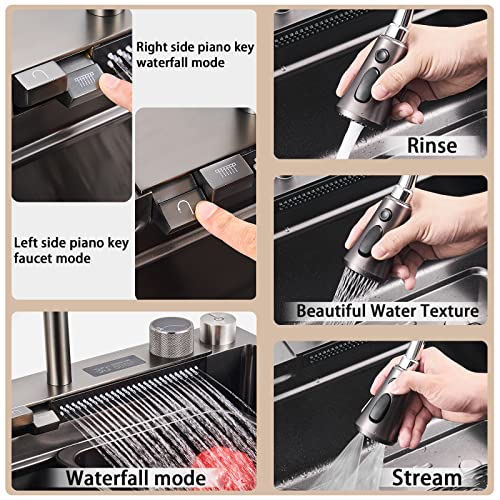 Lavello da cucina multifunzione con display digitale a cascata (nero, 80 x 46 x 22 cm)