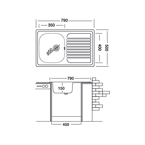 Lavello cucina vasca acciaio inox da incasso gocciolatoio dx 50x79 cm