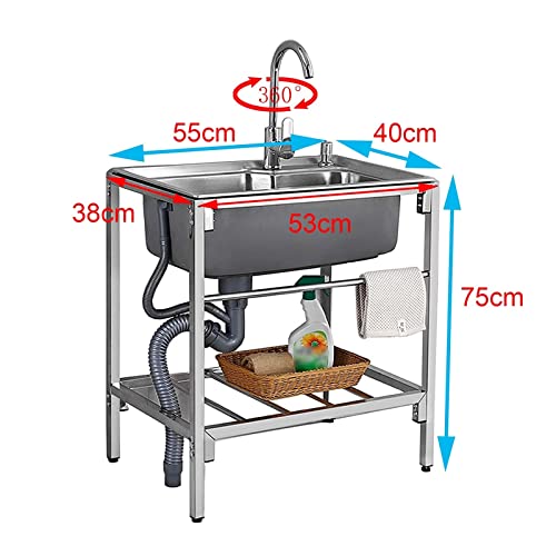 Lavello Da Esterno Lavello Da Cucina, Per Garage Ristorante Lavanderia Lavelli Commerciale Per Ristorante Con Rubinetto, Lavabo Lavandino A Libera Installazione In Acciaio Inox A Vasca Singola