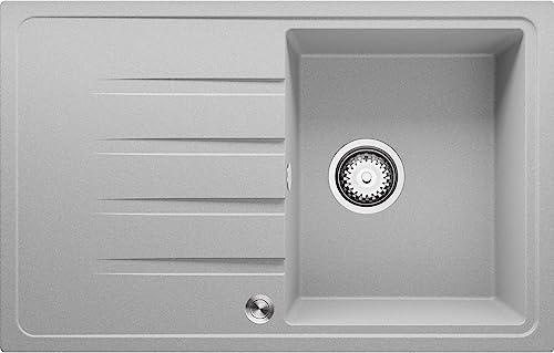 Lavello in Granito 78 x 50 cm, Lavandino Cucina 1 vasca + Sifone Pop-Up, Lavabo Cucina Incasso Milano di Primagran, Grigio