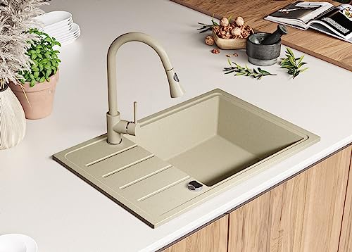 Lavello in Granito 78 x 50 cm, Lavandino Cucina 1 vasca + Sifone Pop-Up, Lavabo Cucina Incasso Copenhague 780 Cargo di Primagran, Beige