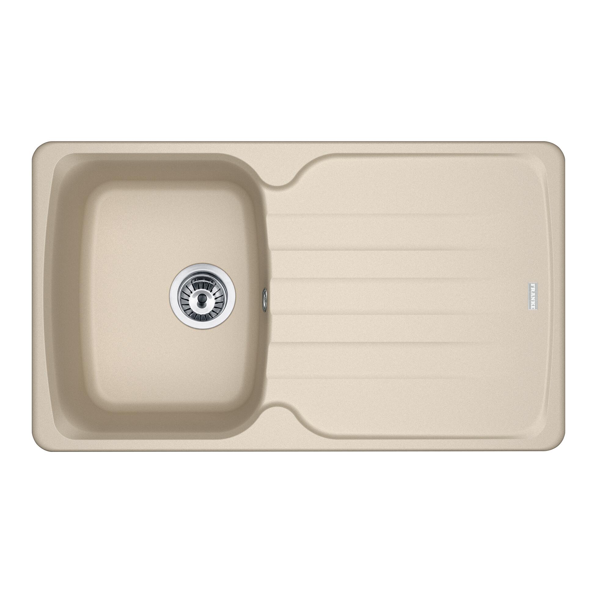 Lavello in fragranite,resistente a graffi, urti, macchie e calore. Superficie antibatterica, reversibile, con troppopieno rotondo, colore avena