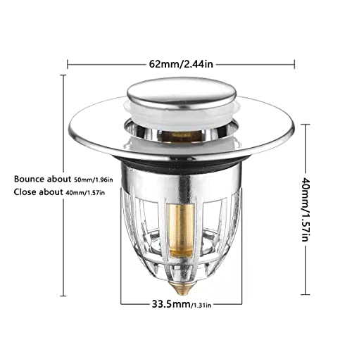 Design anti-intasamento: questo tappo del lavandino è dotato di un filtro a cestello anti-intasamento che filtra le impurità nell'acqua come accessori per capelli, anelli, sporco e previene l'intasamento degli scarichi.