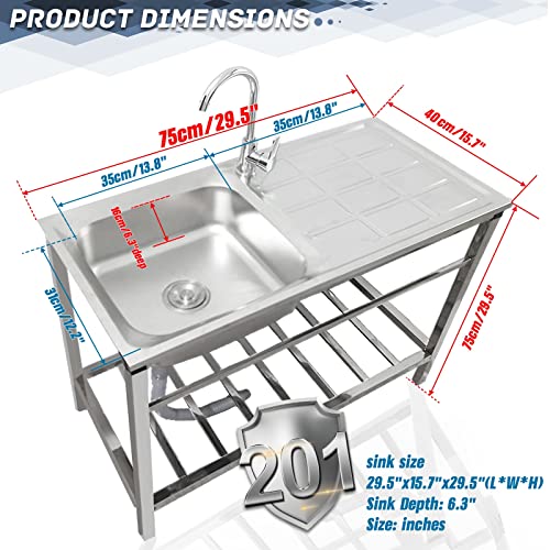 Lavello Mobile in Acciaio Inox con Supporto, Lavello Cucina 1 Vasche, Lavello Commerciale in Acciaio Inox Facile da Montare (Ristorante, Cucina, Lavanderia, Garage) (Size: 75x40x75cm/29.5x15.7x29.5i