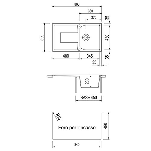 Lavello Plados CORAX 86.10 ad una vasca più scolapiatti con gocciolatoio