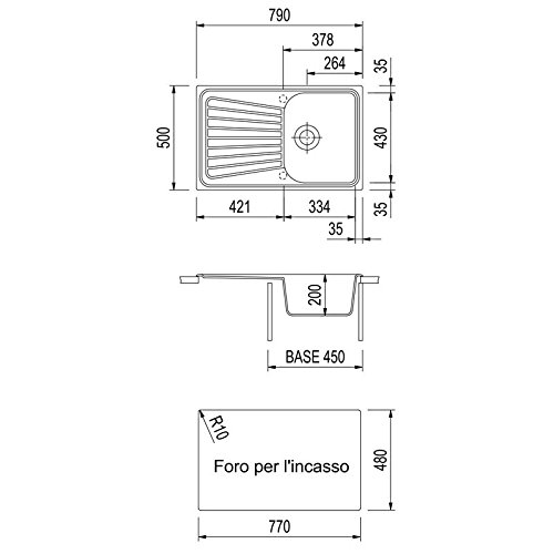 Lavello PLADOS LINEA SPAZIO 79.10 ad una vasca più scolapiatti