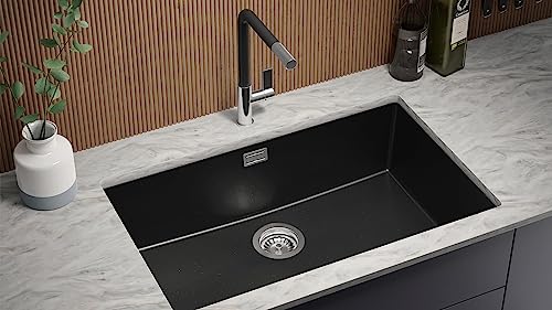 ✅ IL SET CONTIENE: Lavello in granito London 80, sifone salvaspazio di alta qualità, piletta con griglia e troppopieno, attacco a lavatrice o lavastoviglie, istruzioni di montaggio