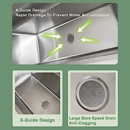 Pratico lavello commerciale free-standing: Questo lavello commerciale monovasca è realizzato in acciaio inox con trattamento superficiale spazzolato e antigraffio, resistente alle macchie, ai graffi e all'usura, gli angoli e i bordi arrotondati sono progettati in modo da non lasciare facilmente acqua stagnante, facile da pulire e durevole.