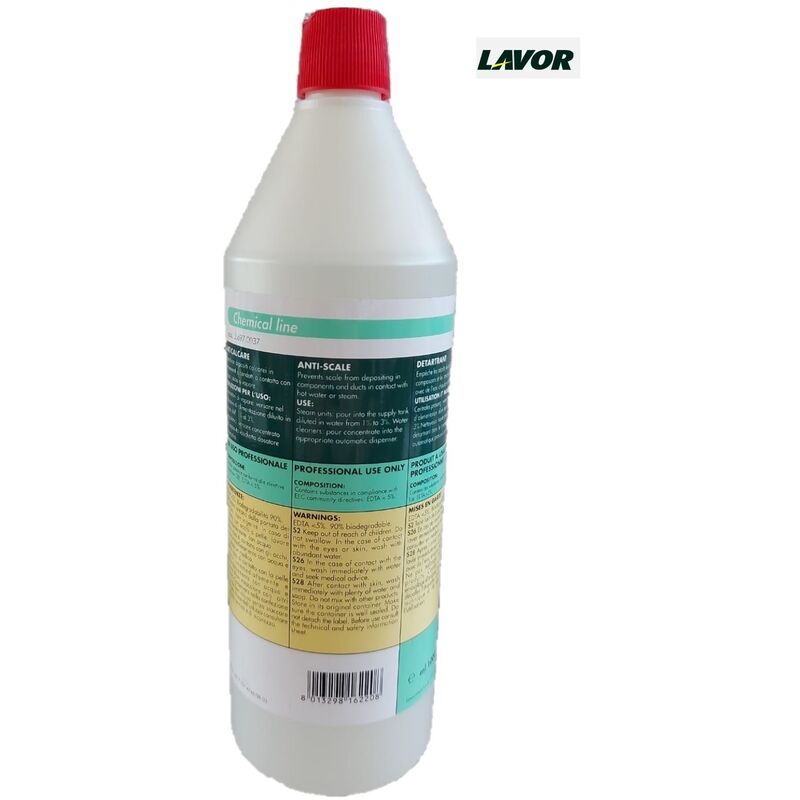 LAVOR ANTICALCARE CHEMICAL LINE PER IDROPULITRICI E GENERATORI VAPORE 3.697.0037 DESCRIZIONE PRODOTTO ANTICALCARE Impedisce depositi calcarei in componenti e condotti a contatto con acqua calda e vapore. Confezione da 1 Litro. ISTRUZIONI PER L'USO GENERATORI DI VAPORE: versare nel serbatoio di alimentazione diluito in acqua dall' 1 al 3%. IDROPULITRICI: versare concentrato nell'apposita vaschetta dosatore automatico. AVVERTENZE NON MESCOLARE CON ALTRI PRODOTTI