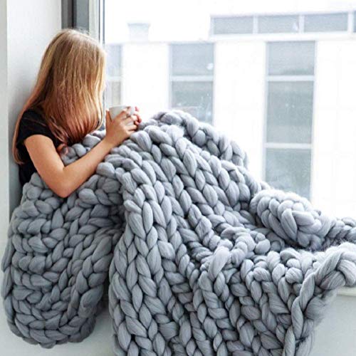 Lavorata Lana Grossa Coperta, Coperte Ingombranti Maglia con Cavo in Cotone Filato Morbido Fatto Mano Grigio 127×152cm