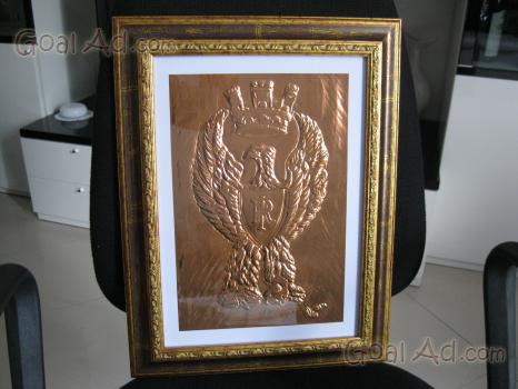 Lavoro in rame con cornice raffigurante il fregio della Polizia di Stato.