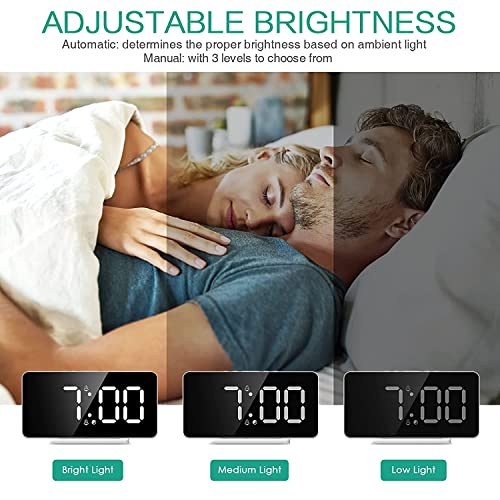 【HD Display Mirror Surface】: il nostro orologio digitale con un dispay ad alta definizione, ampio angolo visibile, che potete vedere il tempo da una lunga distanza e angolo diverso. Combines with makeup mirror and time display function, The display you can a use it as a mirror for your beauty and makeup while watching the time. La superficie dello specchio appositamente progettata non è facile da essere stained che può essere pulita con un singolo rub per ripristinare l'originale pulizia appearance.