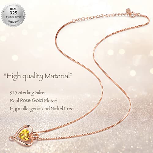LAVUMO Collana Donna Cuore Argento 925 Oro Rosa Originale Regalo Donna per Lei Amiche Moglie Mamma Amica Compleanno San Valentino Natale Anniversario Donna Gioielli Regalo Idea(LA-RG-11)