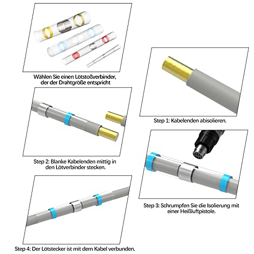 Lavvio - Connettori per saldatura, impermeabili, per solazione impermeabile, 200 pezzi, in scatola di imballaggio, 4 misure diverse (0,25-6,00 mm²)