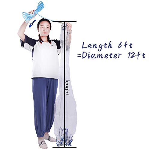 Lawaia Rete da pesca in acqua salata per esca trappola per pesci rete da tiro da pesce. Dimensioni 10 m, raggio monofilamento linea d'acqua dolce