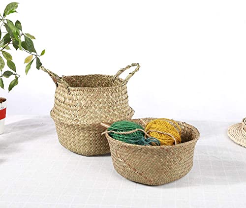Lawei - Set di 2 cestini portaoggetti in vimini di alghe marine, fatti a mano, pieghevoli, con manico, organizer per la casa, per giocattoli, panni da lavare, picnic, piante, borsa da spiaggia, small