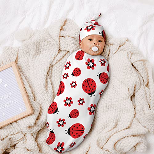 Lawenp Simpatico animale coccinella fiore cotone neonato swaddle coperte e cappello set neonati neonati che ricevono coperte con berretto