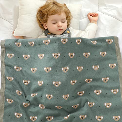 LAWKUL Coperta per neonati, 100% cotone, morbida, lavorata a maglia, per neonati, ragazzi, ragazze, koala, 100 x 80 cm, verde scuro